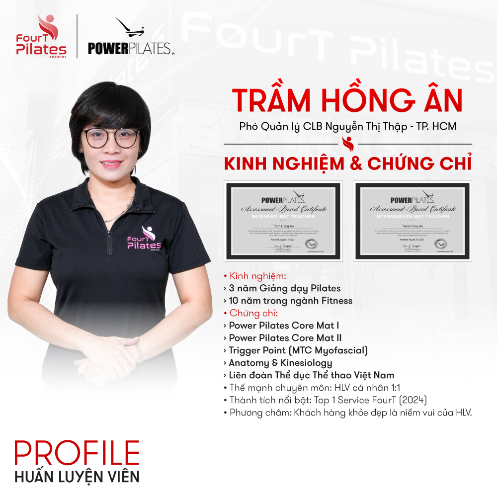 Với hơn 10 năm kinh nghiệm trong lĩnh vực Fitness và 3 năm chuyên sâu về Pilates, HLV Trầm Hồng Ân sở hữu nền tảng kiến thức vững chắc về cơ thể học và huấn luyện cá nhân. Anh tập trung xây dựng các chương trình tập luyện 1:1 cá nhân hóa, giúp khách hàng cải thiện sức khỏe, vóc dáng và nâng cao chất lượng vận động trong cuộc sống hằng ngày.